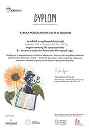 Certyfikat za aktywny udział w Europejskim Dniu Sportu Szkolnego oraz starania wdrożone w promocję aktywności fizycznej wśród uczniów i całej społeczności szkolnej.