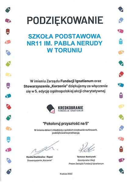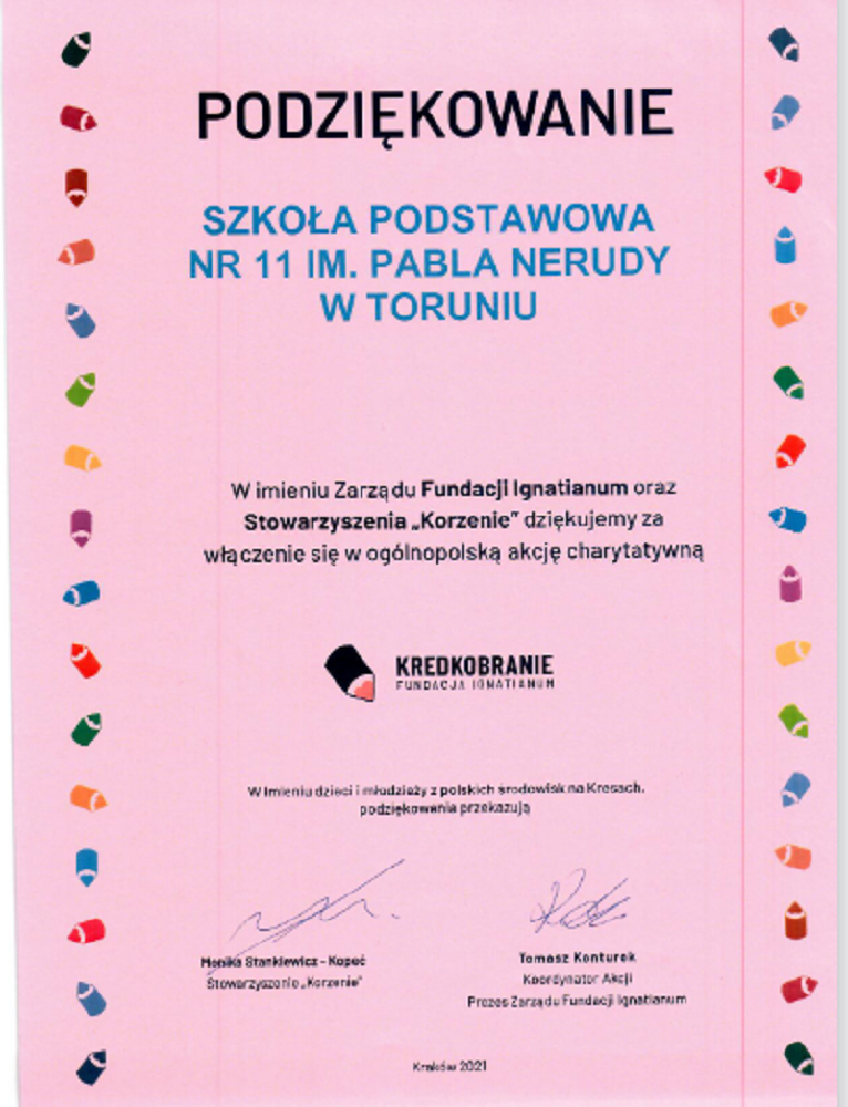 Podziękowanie od Zarządu Fundacji Ignatianum oraz Stowarzyszenia "Korzenie" za włączenie się w 5. edycję ogólnopolskiej akcji charytatywnej