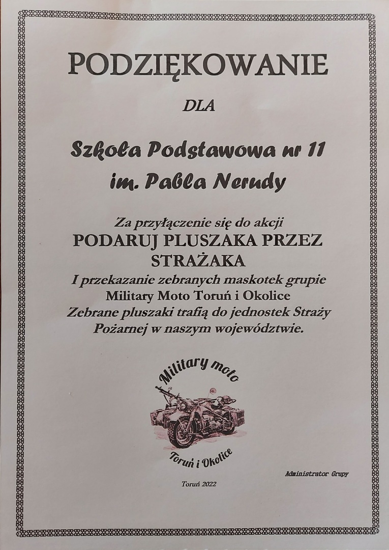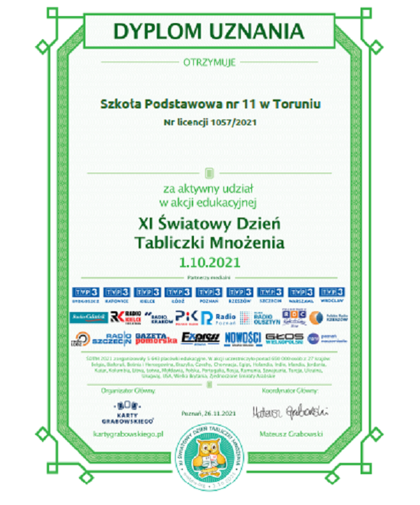 Podziękowanie za udział w Konkursie Gwiazdy Grodu Kopernika