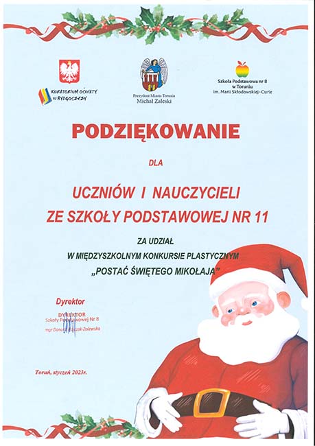 w MIĘDZYSZKOLNYM KONKURSIE PLASTYCZNYM: "Postać świętego Mikołaja"