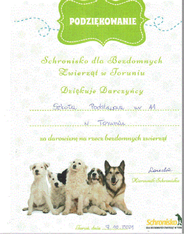 Podziękowanie od pani Janiny Mirończuk prezes Fundacji "Światło".