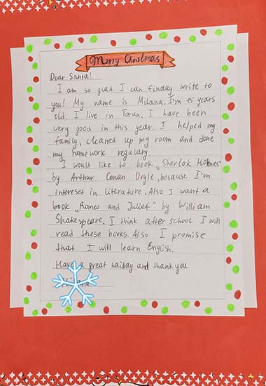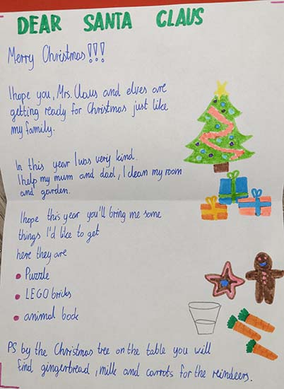 Grudzień to absolutnie ostatni moment, by napisać list do Świętego Mikołaja. Nam się udało! Zdążyliśmy wysłać nasze listy jeszcze przed świętami. A były to listy wyjątkowe, bo wcale nie prosiliśmy w nich o prezenty, ale opowiadaliśmy o naszej szkole, kolegach i ulubionych zimowych aktywnościach i to wszystko po angielsku!!! Teraz czekamy na odpowiedź.