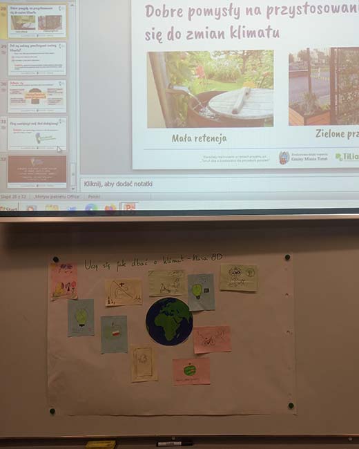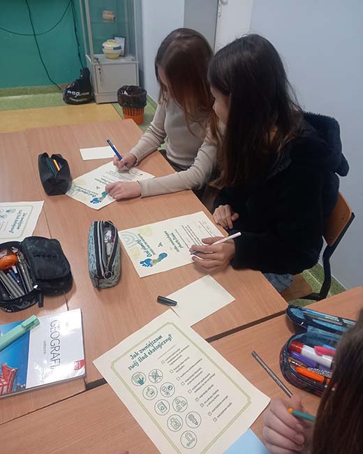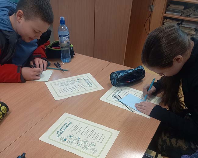 Na koniec wspólnie, uczniowie i prowadzący, znaleźli mnóstwo sposobów, jak każdy z nas może dbać o klimat. Uczniowie wiedzą, że można zrobić naprawdę dużo i z zaangażowaniem określają swoje zobowiązania wobec Ziemi.