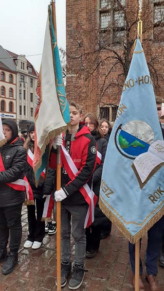 18 stycznia Toruń obchodził 103. rocznicę powrotu miasta do wolnej Polski. Z tej okazji odbyła się uroczystość na Rynku Staromiejskim. W tych ważnych uroczystościach nie zabrakło delegacji z naszej szkoły i pocztu sztandarowego. Szkołę godnie reprezentowali Zuzia, Iga i Mateusz.