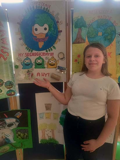 Amelia Witkowska zajęła 3 miejsce. Amelia przedstawiła działania, jakie podejmuje nasza szkoła w ramach dbania o naszą planetę Ziemię.