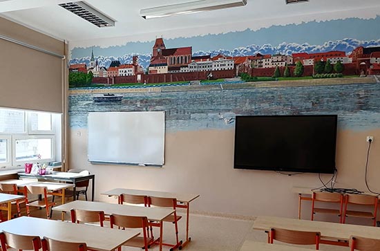 Przez wakacje sala nr 20 przeszła metamorfozę: m. in. pomalowane zostały ściany, szkoła zakupiła nowe rolety, a Rodzice uczniów z obecnej klasy 3B wymalowali piękny mural przedstawiający panoramę Torunia.