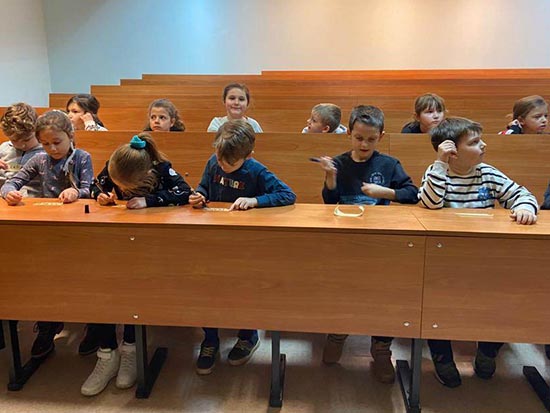 To już kolejna wizyta klas pierwszych na UMK. Dzieci zostały zaproszone na warsztaty projektowe zorganizowane przez studenckie koło naukowe pedagogów. Projekt naukowo - edukacyjny nosił nazwę” Kopernik wiele talentów ma, czy każdy je dobrze zna” i został przygotowany i przeprowadzony przez studentów Pedagogiki pod kierunkiem p. dr Elżbiety Wieczór. Dzieci poprzez zabawę zdobywały wiedzę o Mikołaju Koperniku, Układzie Słonecznym, tworzyły własne planety, rozwiązywały zagadki , ćwiczyły spostrzegawczość.
