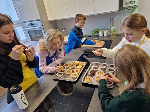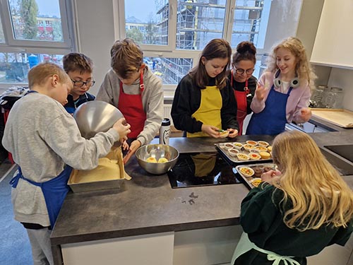 W "Pracowni Smaków" znowu zapachniało pieczonym ciastem. Uczniowie wraz z nauczycielami na dodatkowych zajęciach z języka polskiego przygotowali różne potrawy. Jutro: Dzień Życzliwości" - słodki poczęstunek już gotowy.