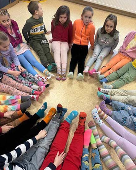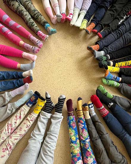 Był to również dzień wyjątkowy dla osób z trisomią 21 chromosomu (Zespół Downa). Dzięki tym osobom świat jest piękniejszy , pełen barw i niepowtarzalny. Mówiliśmy o tym na lekcjach. Z tej okazji również założyliśmy dwie różne skarpetki.