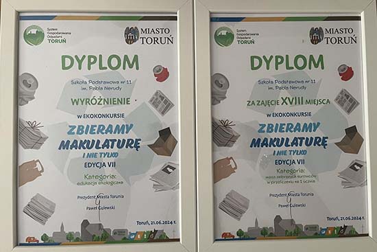 W VII edycji "Ekokonkursu - Zbieramy makulaturę i nie tylko" nasza szkoła otrzymała łącznie 5000 zł nagrody!!! Dziękujemy Państwu za udział w akcji i zachęcamy do dalszego zbierania surowców !!!