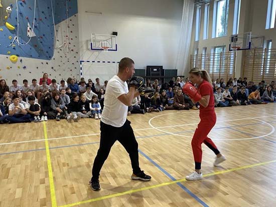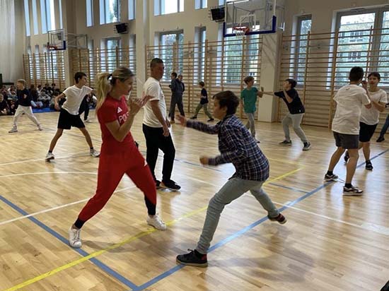 Goście poprowadzili trening dla naszych uczniów a najbardziej zaangażowanych nagrodzili medalami prestiżowego polskiego turnieju bokserskiego imienia Feliksa Stamma.