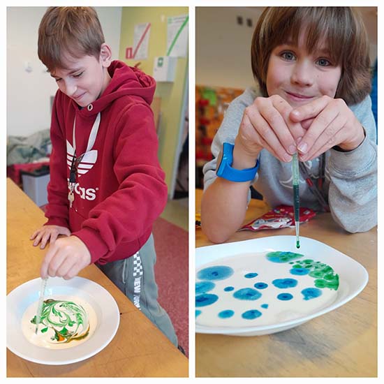 z serii tych, które zaskakują i wywołają uśmiech na buzi uczniów było malowanie na... mleku.