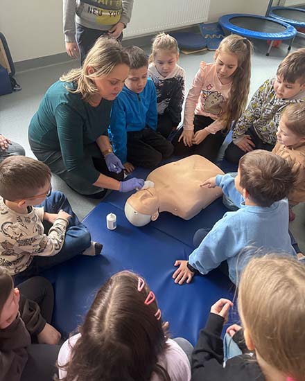 Szkolenie z pierwszej pomocy w klasie 2b - prowadziła p. Agnieszka Wojciechowska. Podczas zajęć dzieci mogły poczuć się jak mali ratownicy poznając procedury zachowania się w sytuacjach zagrożenia życia.