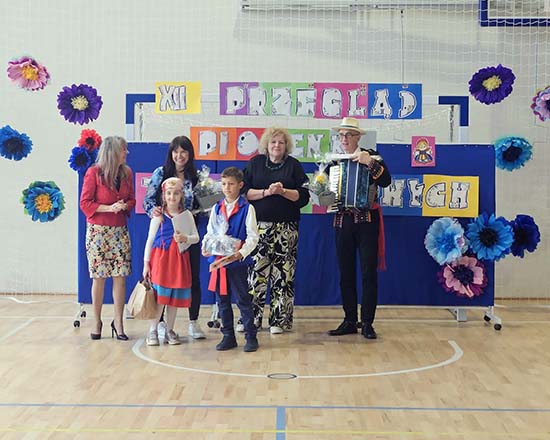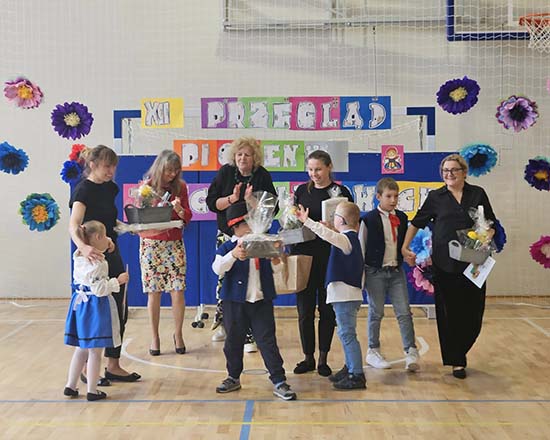Nie zabrakło też występów naszych uczniów z klasy 2 a. Wszystkie występujące zespoły zostały nagrodzone. Obecnością zaszczyciła nas Pani Beata Sikorska Kujawsko-Pomorski Wicekurator Oświaty, Pani Danuta Brzózka-Ciechanowska starszy wizytator Kuratorium Oświaty w Bydgoszczy Delegatura w Toruniu oraz Pani Iwona Muszyńska Dyrektor Wydziału Edukacji w UMT.