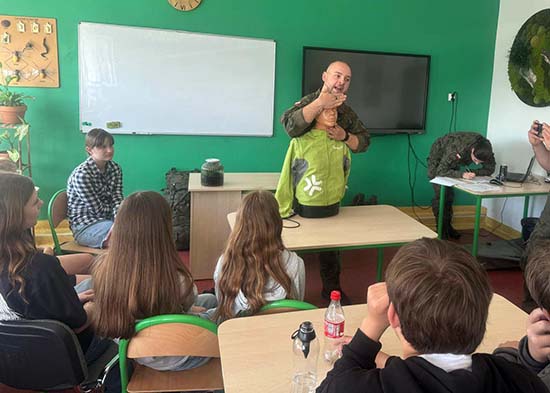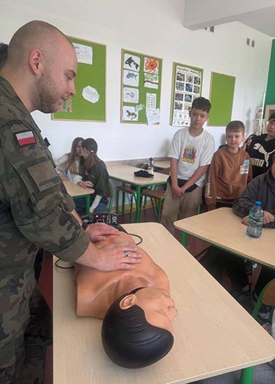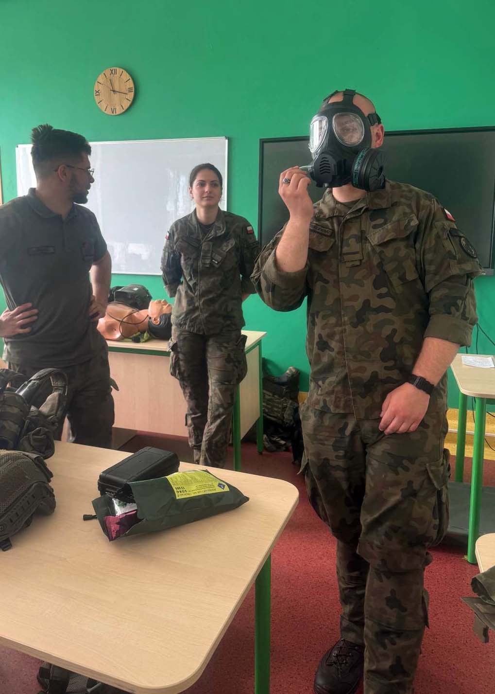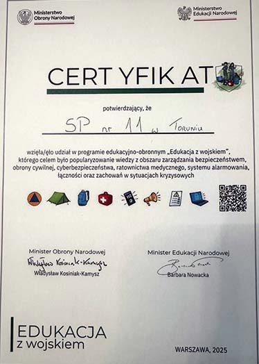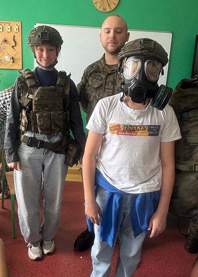 28 maja klasy 6 d i 6a wzięły udział w programie edukacyjno - obronnym „Edukacja z wojskiem”, którego celem było popularyzowanie wiedzy z obszaru zarządzania bezpieczeństwem, obrony cywilnej, cyberbezpieczeństwa, ratownictwa medycznego, systemu alarmowania, łączności oraz zachowań w sytuacjach kryzysowych. Uczniowie wcielili się w żołnierzy i zapoznali się z niektórymi ich działaniami. Dziękujemy 81 batalionowi lekkiej piechoty w Toruniu za bardzo ciekawą i aktywną lekcję.