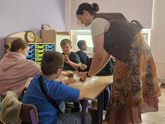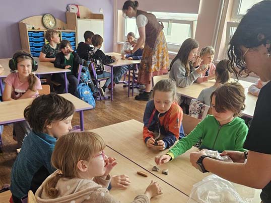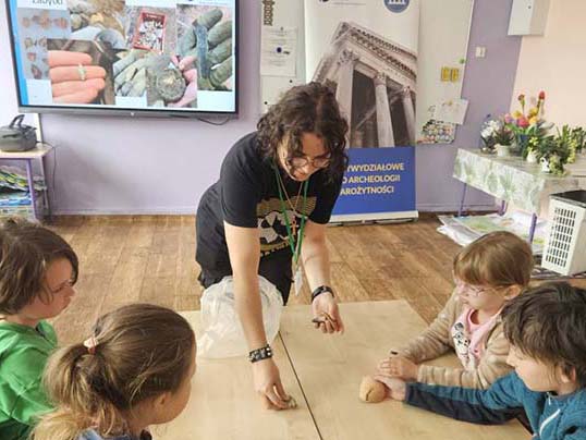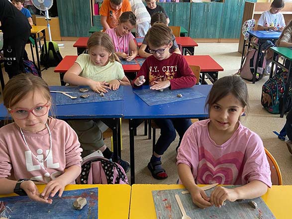 Uczniowie klas 2 wzięli udział w warsztatach archeologicznych prowadzonych przez studentów Międzywydziałowego Koła Archeologii Starożytności Toruńskiego Uniwersytetu Mikołaja Kopernika. Dzieci poznały tajniki pracy archeologa, a największą atrakcją było lepienie naczyń z gliny. Zajęcia wzbudziły dużo emocji, pobudziły kreatywność i pozwoliły dzieciom przenieść się w czasy dawnych cywilizacji. Dziękujemy prowadzącym za inspirujące spotkanie!