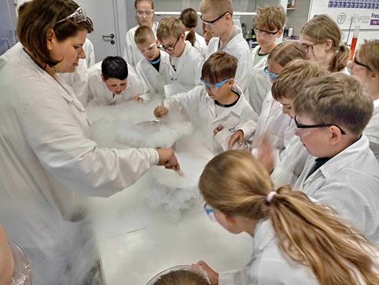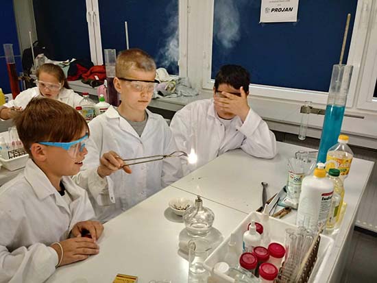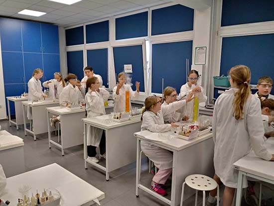 17 czerwca uczniowie klasy Va wzięli udział w wyjątkowych warsztatach laboratoryjnych, które obfitowały w rozmawite doświadczenia i pokazy chemiczne. Dzieci z zaciekawieniem obserwowały działania doświadczonych specjalistów z zakresu chemii, jak również same brały udział w eksperymentach, dzięki którym miały okazję rozwinąć umiejętności badawcze, kreatywność oraz dostrzec "przyjazne" oblicze chemii.
