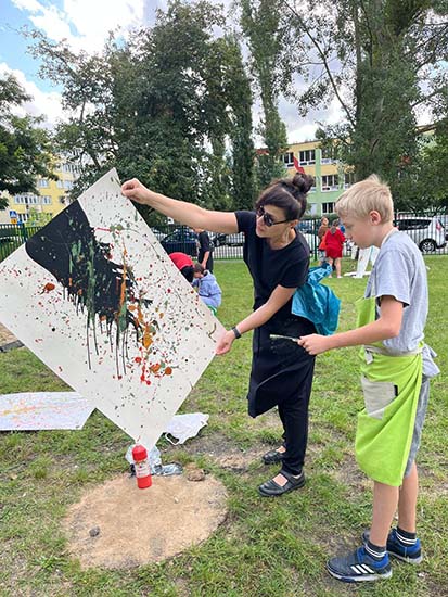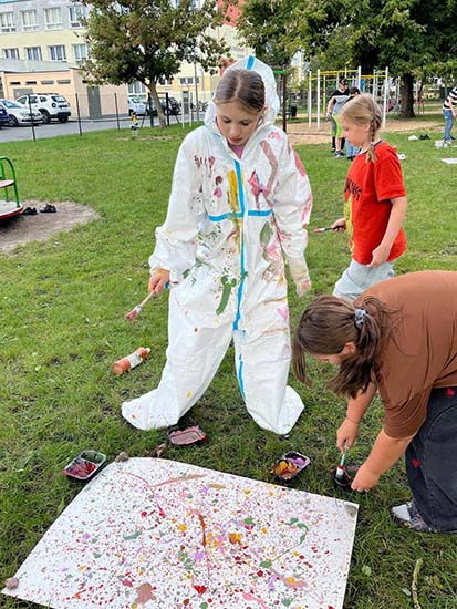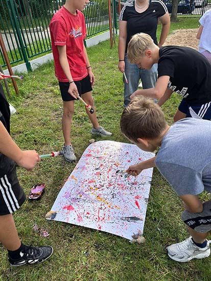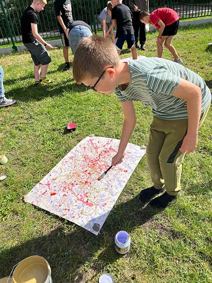 Dripping to technika malarska w malarstwie abstrakcyjnym polegająca na pokrywaniu poziomo leżącego płótna farbami skapującymi z pędzla. Inicjatorem tej techniki był amerykański malarz Jackson Pollock. Była to najbardziej radykalna metoda malarska, tzw. malarstwo gestu. W malarzy abstrakcyjnych mieli okazję wcielić się uczniowie klasy VI , którzy „malowali” w ten sposób swoje wielkoformatowe prace. Podczas zajęć, które odbyły się na dużej przestrzeni, powstały niezwykłe uczniowskie dzieła sztuki. A sami uczniowie świetnie się przy tym bawili.