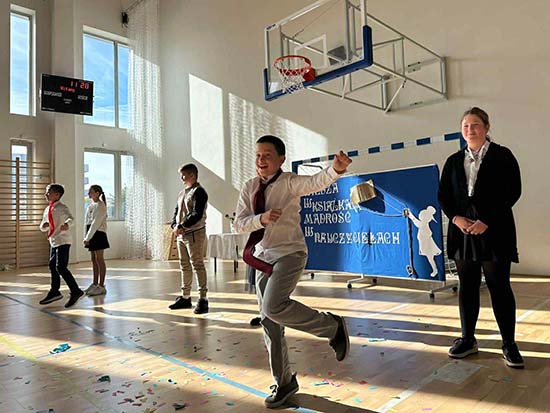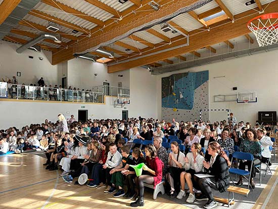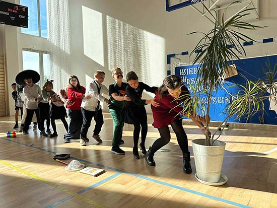 Nie zabrakło też humoru i dobrej zabawy! Uczniowie przygotowali zabawną inscenizację wiersza „Rzepka” Juliana Tuwima, która rozbawiła całą publiczność i wprowadziła wszystkich w radosny nastrój.