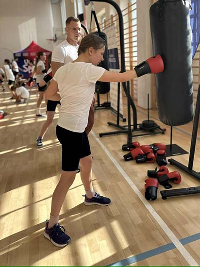 Dziś w naszej szkole odbyły się wyjątkowe warsztaty sportowe w ramach projektu „Piękno w ruchu – boks dla każdego”. Mieliśmy ogromny zaszczyt gościć Anetę Rygielską – olimpijkę z Paryża, która z pasją i energią wprowadziła nasze uczennice w świat boksu.