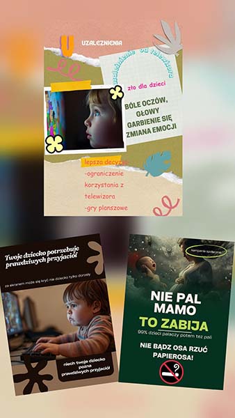 Uczniowie klas 6 w ramach lekcji informatyki, poznawali tajniki programów graficznych i użyciem sztucznej inteligencji przygotowali plakaty dotyczące zagrożeń związanych z uzależnieniami.