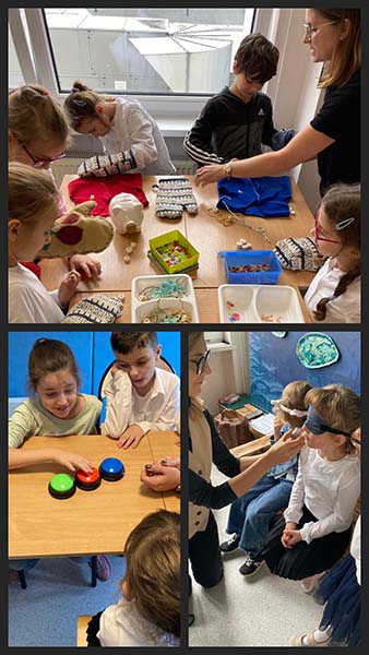 Uczniowie klasy 1 C wzięli udział w warsztatach na temat czterech rodzajów niepełnosprawności, jaka dotyka dzieci i młodzież. Panie terapeutki ze Specjalistycznego Centrum Wspierającego Edukację Włączającą bawiły się z nami wykorzystując wiele ciekawych przyborów. Jednocześnie uczyły nas, jak poznają rzeczywistość, uczą się i komunikują się dzieci z niepełnosprawnością intelektualną, ruchową, wodą wzroku, zaburzeniami ze spektrum autyzmu, czy zakresie komunikacji. To było bardzo pouczające spotkanie.
