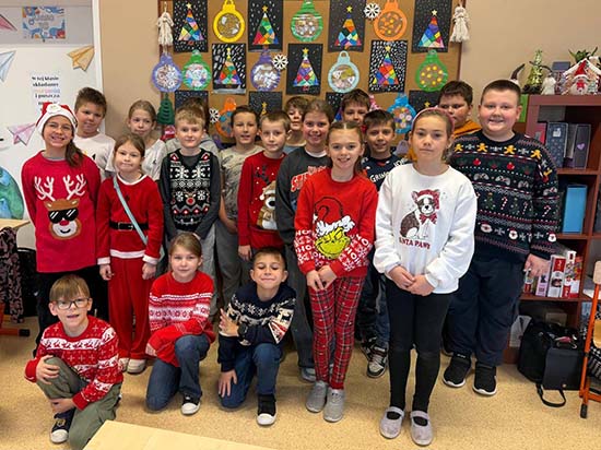 Ten zwyczaj może chyba z powodzeniem stać się tradycją naszej szkolnej społeczności - w Dniu Świątecznego Sweterka dzieci nie tylko nie zawiodły, jeśli chodzi o ubiór adekwatny do okazji, ale również licznie wzięły udział w II.edycji szkolnego konkursu plastycznego: "Zaprojektuj świąteczny sweterek"